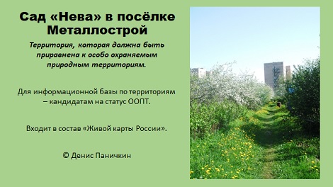 Сад «Нева» в посёлке Металлострой. Территория, которая должна быть приравнена к особо охраняемым природным территориям.