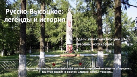 Русско-Высоцкое. В книге Водской пятины упоминания уже есть. Село, в котором сегодня можно встретить высотные, по сельскому счёту, десятиэтажные дома. Изначально называлось просто «Высоким» или Высотским», хотя находится не на возвышенности. А «Русским» село стало, чтобы отличать от сложившегося самостоятельного села «Чухонское Высотское». Чухонцами в этих местах называли представителей угро-финских народов, а иногда собственно финнов, но сейчас «чухонское» население перемещалось с русским, а Финско-Высоцкое (таково его последнее известное название) упразднено за отсутствием населения. Достижением разрешения противоречий между городом и деревней выступает Русско-Высоцкая птицефабрика. Природными ценностями Русско-Высоцкого являются местный лесопарк и родники, дающие начало реке Стрелка.